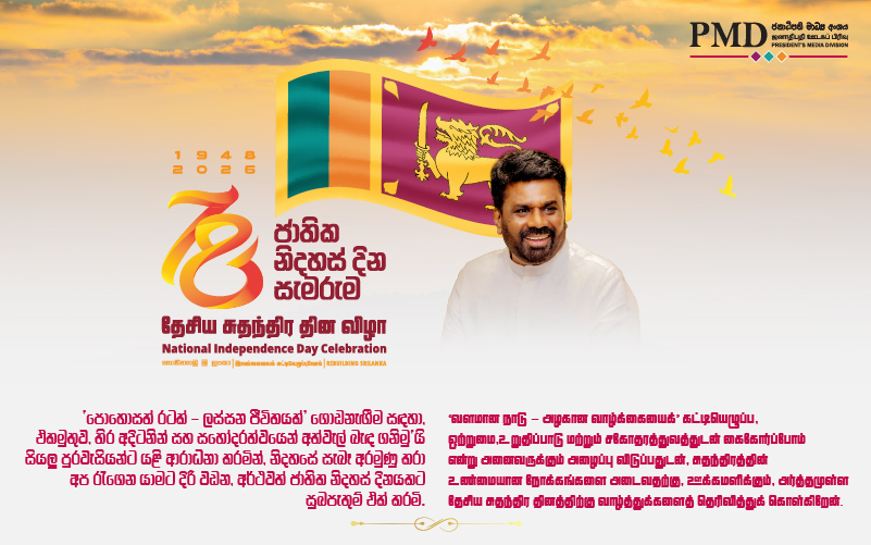கடந்த நூற்றாண்டில் தவறவிட்ட வெற்றிகளை நாட்டுக்குப் பெற்றுக்கொடுத்து, அனைவரினதும் கனவான, ‘வளமான நாடு – அழகான வாழ்க்கையைக்’ கட்டியெழுப்ப, ஒற்றுமை,உறுதிப்பாடு மற்றும் சகோதரத்துவத்துடன் கைகோர்ப்போம் என்று அனைவருக்கும் அழைப்பு விடுப்பதுடன், சுதந்திரத்தின் உண்மையான நோக்கங்களை அடைவதற்கு, ஊக்கமளிக்கும், அர்த்தமுள்ள தேசிய சுதந்திர தினத்திற்கு வாழ்த்துக்களைத் தெரிவித்துக் கொள்கிறேன்.