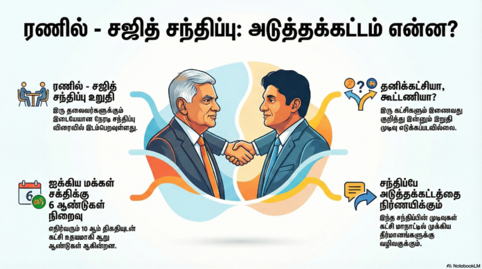 முன்னாள் ஜனாதிபதி ரணில் விக்கிரமசிங்க மற்றும் எதிர்க்கட்சி தலைவர் சஜித் பிரேமதாச ஆகியோருக்கிடையிலான சந்திப்பு விரைவில் இடம்பெறவுள்ளது உறுதியாகியுள்ளது.