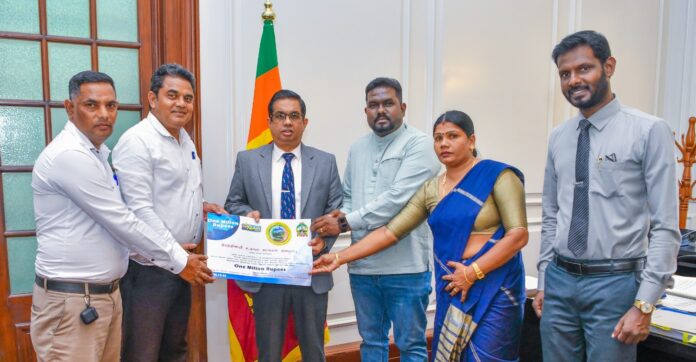 மலையகம் மக்களை பிரதிநிதித்துவப்படுத்தும் இரத்தினபுரி உதவும் கரங்கள் அமைப்பின் உப தலைவர் எஸ். தயாளன், இன்று (24) பிற்பகல் ஜனாதிபதி அலுவலகத்தில் ஜனாதிபதியின் செயலாளர் கலாநிதி நந்திக சனத் குமாநாயக்கவிடம் இதற்கான காசோலையை கையளித்தார்.