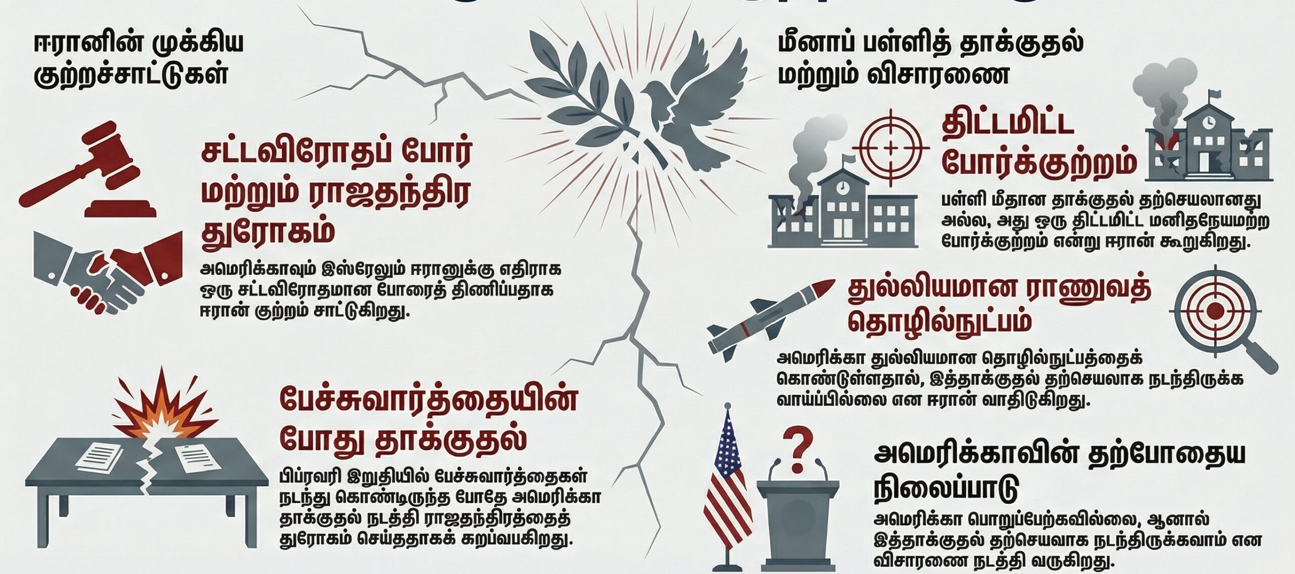 ஈரான், மினாப் பகுதியில் உள்ள பெண்கள் பாடசாலை மீது நடத்தப்பட்ட மனிதாபிமானமற்ற தாக்குதலானது போர்க்குற்றமாகும் எனவும் அவர் குறிப்பிட்டுள்ளார்.