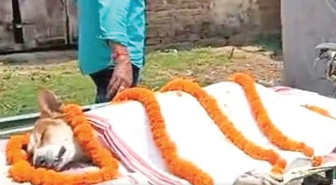 பள்​ளிக் குழந்​தைகளை காப்​பாற்ற விஷ பாம்​புடன் போராடி உயிர்​நீத்த தெரு நாய்க்கு கிராம மக்​கள் அஞ்​சலி செலுத்தி அடக்​கம் செய்​தனர்.