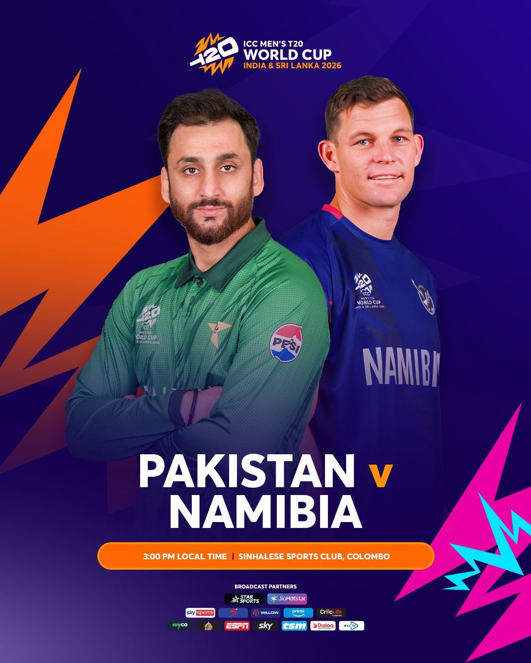 அதேபோல், கொழும்பு எஸ்.எஸ்.சி. மைதானத்தில் நடைபெறும் 25 ஆவது லீக் ஆட்டத்தில் பாகிஸ்தான் மற்றும் நமீபியா அணிகள் மோதுகின்றன.
